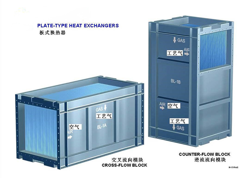 气-气换热器的结构紧凑、材质选择范围广、材质表面光滑、不易结污、容易清洗、维修少,具有弹性密封、传热面不焊接等优点。