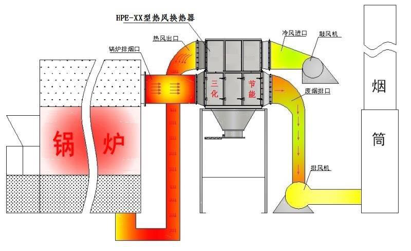 热管换热器采用了传热性能好,使用安全可靠的新型高效传热元件——热管来作为烟气(以下简称热侧)向空气侧(以下简称冷侧)传递热量的超导热体。该热管的工况是相变换热,它的传热系数要比金属和其他材料大几个数量级,俗称“超导热体”。并有以下优点: