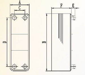 | 型号 | A | B | C | D | E | F | 接管尺寸 | 重量(Kg)N板片数 |