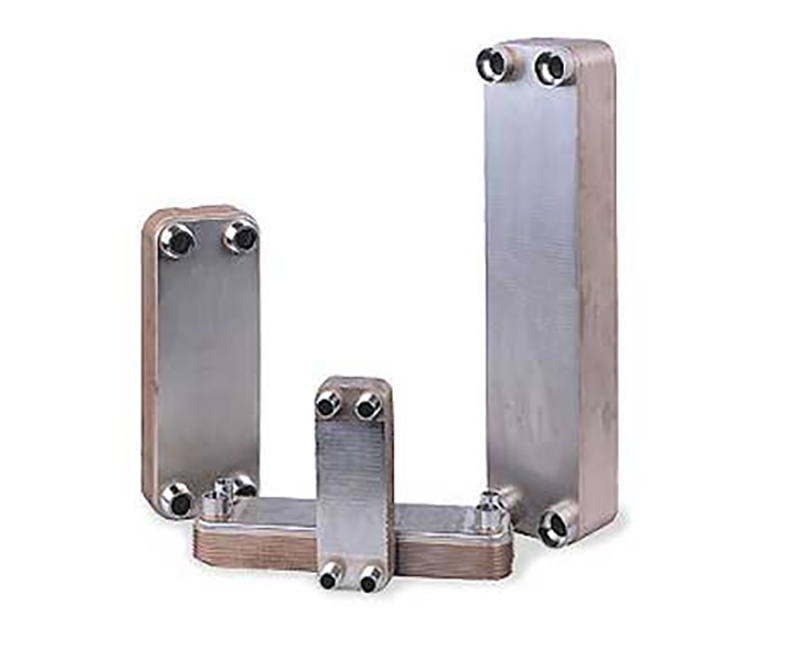 换热面积由冲压成波纹状的薄金属板构成。流体经过精心布置的角边接口流经板片之间的通道,冷媒和热媒总是在相邻的通道内逆向流动进行换热。由于板片边缘采用焊接,因此介质不会从设备中流出。各板片的接触点也是焊接点,以便承受介质的压力。适用各种冷媒、氨水(镍焊型)、有机体溶液、水、油、各种卤水溶液(乙二醇、酒精)等。